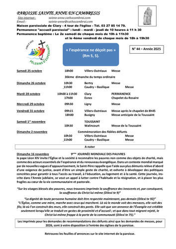 Article publié par response.text()) .then(text => { html = text showLoading = false; })" class="flex justify-center animate-grow-on-hover--small">Cathocambrai • Publié le Samedi 25 octobre 2025 - 11h43 • 7 visites 2544 Semaine du 25 octobre au 2 novembre 2025 Télécharger 233.3 Ko Télécharger