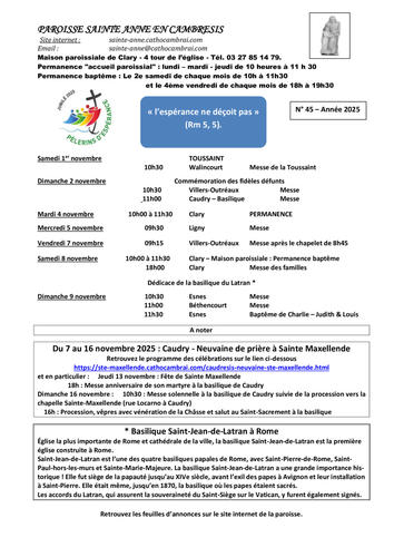 Article publié par response.text()) .then(text => { html = text showLoading = false; })" class="flex justify-center animate-grow-on-hover--small">Cathocambrai • Publié le Samedi 01 novembre 2025 - 14h35 • 13 visites 2545 Semaine du 1er au 9 novembre 2025 Télécharger 193.6 Ko Télécharger