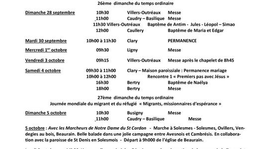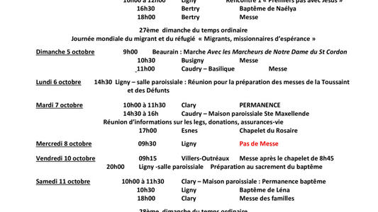 annonces du 27 septembre au 5 octobre